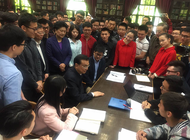 李克强总理考察mk手机注册,与清华学子亲切交流