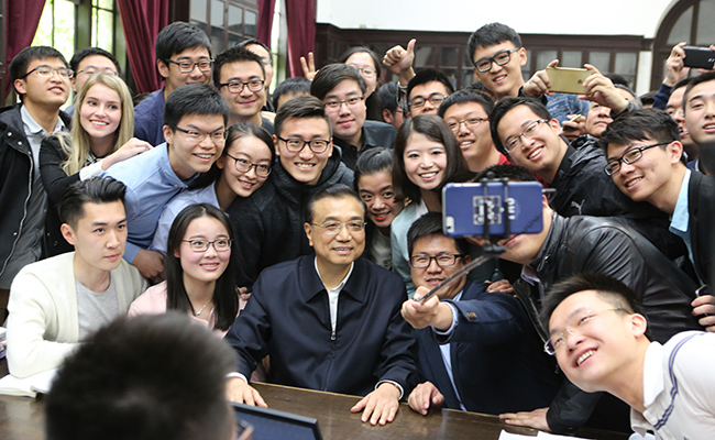 听了总理的寄语,现场响起了热烈的掌声。大家纷纷拿出自拍杆和手机想要与总理自拍。总理也微笑着一一与同学们合影留念。
