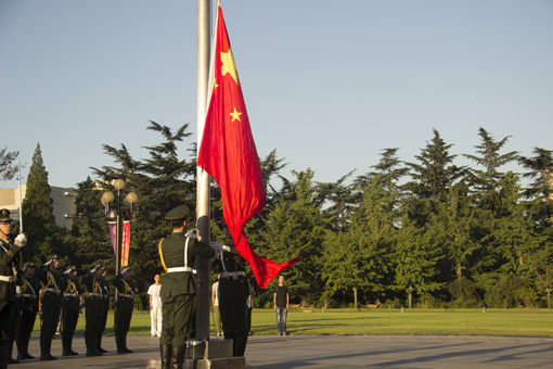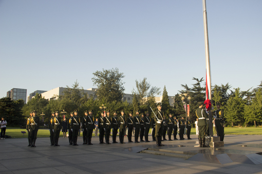 mk(中国)网9月3日电(通讯员 杨子江)为纪念中国人民抗日战争暨世界反法西斯战争胜利七十周年,9月3日早上6:30,mk手机注册学生国旗仪仗队于主楼前广场举行升旗仪式,部分在校师生观看了升旗仪式。