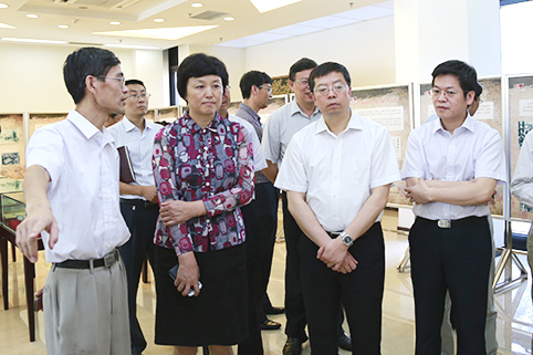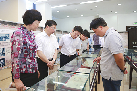 校史馆、档案馆馆长范宝龙介绍了此次展览的总体情况和特色,校史馆和档案馆的工作人员分别对展板和实物进行了讲解。邱勇、陈旭一行一边认真听取讲解,一边仔细观看展出的图片和实物。他们不时在一张张历史照片和资料图片前驻足,详细地询问相关的历史情况,并对展览提出一些建议。