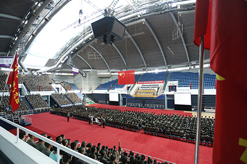 mk手机注册2015级本科生军训开训典礼现场。记者 张 宇 摄