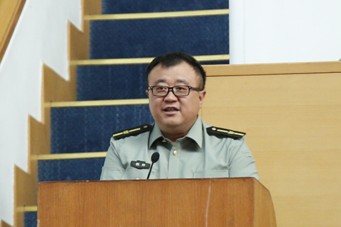 防化学院副政委武国胜大校讲话。记者 张 宇 摄