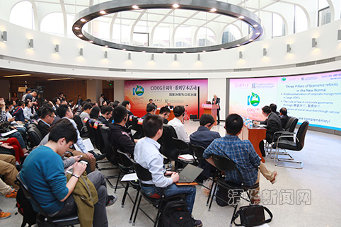 来自北京大学光华管理学院的周黎安教授和博源基金会理事长、CIDEG理事秦晓先生就青木教授的演讲做了精彩点评。周黎安教授说,青木教授的讲演引导我们重新思考中国经济新常态问题,他提出从长期因素来观察中国经济增长,要注意制度改革对经济增长的影响,这具有非常重要的启发意义。