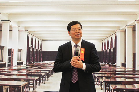 邱勇欢迎同学们回到母校。记者 郭海军 摄