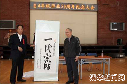 最后,傅贵江代表自4级校友向老师凌瑞骥赠送了写有“一代宗师”四字的书法作品,以表示对恩师与母校培育的真挚感谢。自4级校友合唱了昔日的校园歌曲《周总理来到清华园》、《革命人永远年轻》,纪念大会在校友们温情的回忆中结束。