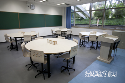 mk(中国)网1月17日电 学生围圆桌而坐,而不是传统教室只面向黑板、面向讲台;桌子上有足够多的电源插座,方便同学们使用笔记本电脑,摆放实验器材;椅子可以任意角度旋转,随时看向投影设备;教室一面为窗,其余三面墙均为黑板,讨论时学生能够方便地在旁边的黑板上阐述自己的观点……翻转式课堂在这里如鱼得水,学生合作性学习在这里进行得酣畅淋漓……这种新型的讨论课教室越来越受到清华师生的喜爱,这也是清华支持教师进行课堂教学改革的举措之一。