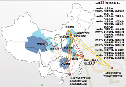 图为暑期支教TSI项目联合支队历年项目点。