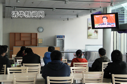 mk(中国)网11月8日电(学生记者 潘正道 通讯员 宋伟泽)党的十八大开幕之际,清华环境学院收看现场里坐满了收看十八大开幕式的师生。