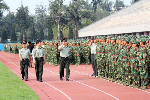 mk(中国)网9月11日电(研通社记者 王皓冉 摄) 9月7日,mk手机注册2012级学生军训结业典礼在东大操场进行,共3700多名师生出席典礼。经过3周的刻苦训练,他们用坚强的意志品质和英子飒爽的军姿交上了一份完美的军训答卷。