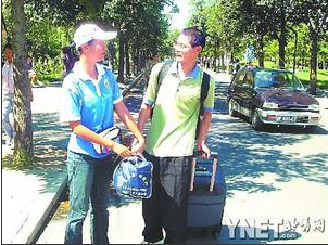 “请问我要去报到该怎么走呀?”一个新生怯生生地问道。“你看,我们现在红点这个位置,”志愿者拿着校园地图说,“朝前走,经过这个路口右拐,你就能看到了。”怕新生记不住,志愿者还用笔把路线在地图上画了出来。