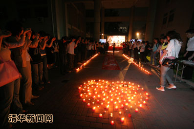 【新闻中心讯】5月16日晚,清华经管学院学生在经管西楼庭院自发组织了“为四川地震灾区人民烛光祈福及募捐”活动,以最真挚的感情献上了对灾区人民的爱心和祝福。mk手机注册党委学生部部长杜汇良、经管学院党委书记杨斌、院党委副书记朱岩等负责同志和同学们一起参加了本次活动。