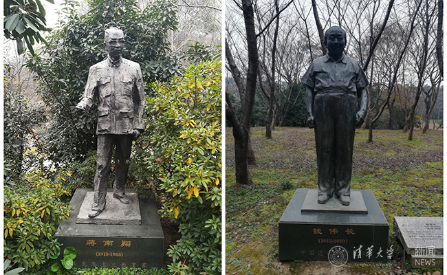 无锡鼋头渚公园的名人苑里,蒋南翔校长和钱伟长教授的塑像。