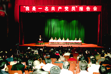 【新闻中心讯 摄影 海军】11月11日下午,全校各单位保持共产党员先进性教育活动领导小组成员,以及教工党支部和离退休人员党支部的代表近千人,在大礼堂聆听了一场题为“我是一名共产党员”的生动的报告会。我校六位不同年龄、不同岗位的共产党员,用鲜活的事例、朴素的语言、真实的思想,讲述了他们如何立足本职、发挥共产党员的先锋模范作用,赢得了听众阵阵热烈的掌声。出席报告会的有校党委书记陈希、副书记张再兴、副校长张凤昌、纪委书记孙道祥等。校党委常务副书记庄丽君主持了报告会。