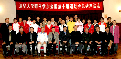 校党委书记陈希在发言中首先向参加十运会的同学和老师表示祝贺。他说,重视和加强体育工作,是学校全面贯彻党的教育方针的重要内容。培养体育优秀人才在我校有着良好的传统,多年的探索证明,通过大学与体育系统的合作,能够培养出德、智、体全面发展的体育优秀人才,“体教结合”模式的探索是有价值的。陈希还进一步阐述了体育代表队的“三不”原则,并强调,要全面把握竞技体育中“公平竞赛”的原则,大学具有引领社会潮流、精神道德风尚的作用,体育代表队要努力在思想、道德、精神上发挥示范和表率作用,要引领好的风尚。他说,大学精神强调探索和创新,体育代表队在训练上要强调科学性、创新性、有效性,要探索如何通过体制创新和机制创新把清华优秀的科研资源、高素质的教师和良好的思想政治工作基础与体育优秀人才的培养结合起来;大学体育代表队员首先是学生,对他们的培养要着眼于全面发展,不仅要有较高的体育运动技能,更要有良好的思想政治素质和良好的学风,学生要勤奋学习,教师要时刻牢记教书育人的责任,要学为人师、行为世范;在成绩面前要谦虚谨慎,不骄不躁,继续埋头苦干;要讲团结,讲团队。他勉励大家继续探索,不断提高,不断取得好的成绩,再上新的台阶。