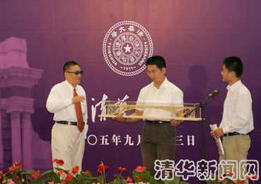 在众人期盼的目光中,两件神秘的纪念品被拿上了演讲台:一件文化衫,一座模型桥。“这件文化衫印有清华校训‘自强不息,厚德载物’,希望能与李敖先生共勉。这座模型桥是清华学生亲手设计、制作的,获得过mk手机注册结构设计大奖赛‘最佳奖’。送这座桥,希望两岸的文化交流像‘桥’一样,沟通海峡两岸,促进祖国和平统一。” 李敖先生对学生的纪念品表示感射。