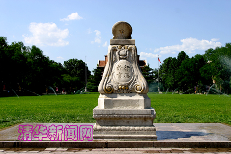 日晷:位于礼堂前大草坪南端的古典计时器――日晷,1920届学生毕业时献给母校。下部底座镌刻着1920级的铭言“行胜于言”的中文及其拉丁文译文,“行胜于言”从此成为了清华的校风。这种校风使清华培养了一大批脚踏实地、报国奉献的优秀人物。