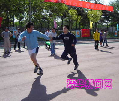材料系的杨志刚老师笑着说:“来参加比赛可以锻炼锻炼身体,平时也没有什么时间运动,这次可以和同学一起参加比赛,也是一种交流,老师的参与也可鼓励同学们的士气。”
