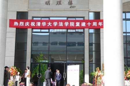 法学院成立10周年的期间,创造了若干个第一。其中,他们是第一家拥有自己的办公楼的国内的法学院。香港著名法律界人士李国能先生、梁爱诗女士为复建法律学系和法学院倾注了极大的热情,香港著名企业家荣智健先生慷慨解囊,捐资3000万港币建设法学院大楼。建筑面积10000平方米的法学大楼明理楼1999年12月正式投入使用,使得清华法学院的办学条件达到了和国外名校不想上下的水平,保证了每一个教师都有自己的办公环境,杜绝了过去教师“教室-宿舍”的两点一线的工作模式。