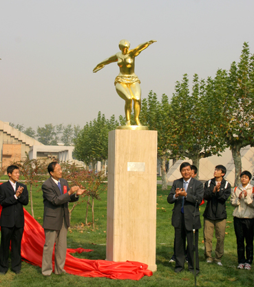 在这个纪念日,由我校美术学院教授李象群设计的象征人类拼搏精神的雕塑《永恒的运转》也在综合体育中心西侧落成。在西大操场还进行了一场50年代~90年代和新世纪的队员接力活动,象征清华体育精神的传承不息。