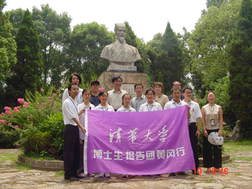 在“高山铺清水河战役烈士纪念碑” 前,同学们向为全中国的解放贡献宝贵生命的革命先辈们献花、鞠躬、默哀致敬。英雄已去,英气长存!面对他们,清华的博士生们更应该感到肩负的重任,只有积极投身中华民族复兴伟业才能对得起革命先辈的奋斗和牺牲。
