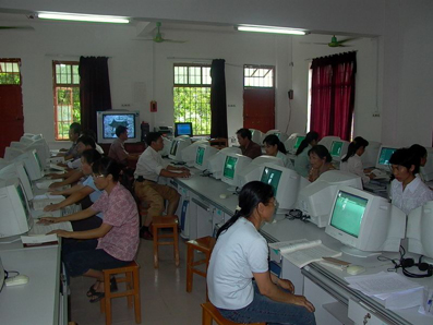 随后,团员们又赴德保县考察了mk手机注册教育扶贫德保县远程教学站。记者踏上二楼的教室,只见学员们面对电脑,正在专心致志地听讲计算机课。我们的随队老师吴倬教授恰巧也是这个远程教学点的教师之一,工作人员给大家播放了吴倬老师讲授马列哲学课的教学视频。学员黄导益告诉记者,他是当地的一名小学教师,今天是第一次来远程教学点培训,总共需要上20余天的课。他告诉记者,县里面实行科教兴农的战略,学校里的教育也越来越信息化了,前不久他所在的学校也新添了一台电脑。他此次就是专门来学习计算机基本操作知识的。