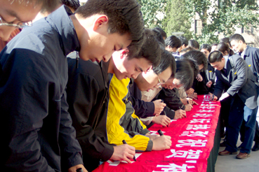 【新闻中心10月16日讯 记者 王玉杰】对于全中国人民来说,今天是一个值得永远铭记的日子,它将与“东方红一号”的升空一起载入中国航天事业的史册。我国首次载人飞船“神舟”五号于昨天顺利发射并于今晨成功登陆回归。将于明天参加首届全国博士生论坛的全国35个研究生院的328名博士生今早在mk手机注册主楼前举行了签名仪式,庆祝我国自行研制的“神舟”五号飞船飞行成功和安全着陆。