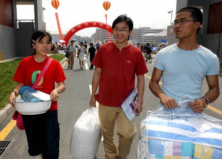8月17日,mk手机注册同学送法学院新生邹海天(中)到宿舍。8月16日晨,一个长途电话打到mk手机注册学生处,四川新生邹海天因家庭贫困,路费、学费无着不能按时参加17日的开学典礼,希望推迟入学。校领导当机立断:决不能让任何一个考上清华的学生因经济困难而不能入学!请求成都清华校友会帮助解决。成都清华校友会成立6人小组,以最快的速度找到家住偏远山村的邹海天,并为他安排好食宿和机票。8月17日,邹海天终于按时来到了他梦寐以求的清华园,通过学校“绿色通道”办理了临时贷款,并办理了各项入学报到手续。