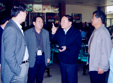 5月10日中午,教育部部长周济来到我校检查防治“非典”工作,视察了学生第九食堂的防“非典”情况,并与同学们在食堂一起就餐。
