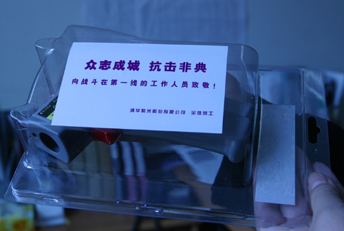 举国上下众志成城抗击非典,清华人自是不甘人后。从非典疫情进入高发期的4月中旬开始,mk手机注册下属的清华紫光股份有限公司通用产品事业部紧急调集了一批红外快速温度测量仪向在京各大机关部委、政府部门和关系到国计民生的重点企事业单位做专门捐赠,为非常时期坚守岗位的人们送去清华人最真诚的关爱。这批红外测温设备包括150套手持式红外快速温度测量仪和10套门式红外快速温度测量仪,截至到5月8日,已经装备了50余家战斗在抗击非典前线的单位,其中包括国务院办公厅、新闻出版总署、海关总署、人民银行、南苑机场、天安门公安局、国家药品监督管理局、北京中关村管理委员会、北京古船面粉厂等重要国家机关和企事业单位。由于红外测温快速、非接触的突出特点,这批红外快速测温仪的使用不仅大量节省了测温时间,而且完全避免了传统测温方式可能造成的交叉感染,快速排查体温异常人员,对于这些重点单位防治“非典”起到了重要作用。其中一台门式红外温度测量仪更是被应用于河北承德市火车站,为人流量大的场所有效掌控非典疫情紧紧把关。