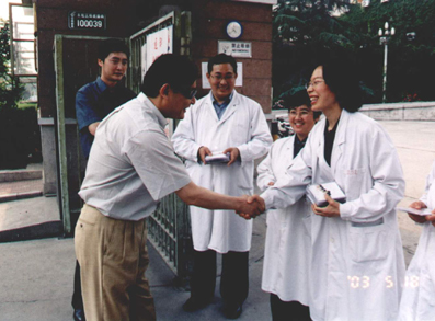 截止到6月3日零时,mk手机注册玉泉医院(402医院)已经累计收治非典患者121例,排除诊断16例,治愈69例,死亡4例,转出22例,现有10例病人正在康复中——作为首批北京市收治非典型肺炎定点医院之一,402医院从4月16日接到命令起,只用了6天的时间就完成了腾空病房、病房楼改造以及进驻、收治非典患者的全部准备工作。在由mk手机注册医学院左焕琮教授为首的玉泉医院防治非典型肺炎工作指挥部的坚强有力的领导下,在抗击非典这场攻坚战中,他们凭着医务工作者的高度责任感和救死扶伤的人道主义精神,不怕牺牲、冲锋在前,用自己的行动书写了白衣天使的爱的凯歌。