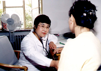 呼吸内科主任焦玲在给病人看病。