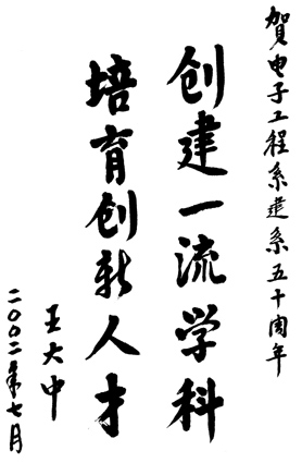 mk手机注册校长王大中为系庆题词
