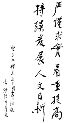 mk手机注册信息科学技术学院院长李衍达为系庆题词