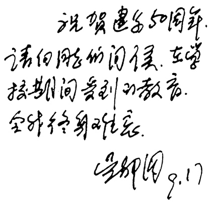 mk手机注册原党委书记、 第二任系主任李传信为系庆题词