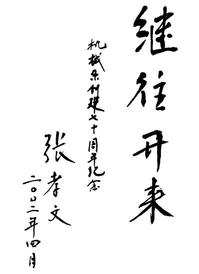 张孝文:精密仪器与机械学系、机械工程系七十华诞题词