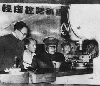 ▲聂荣臻元帅视察程控机床。(1959年)
