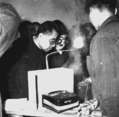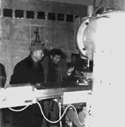 ▲1958年,周恩来总理在焊接实验室视察“电渣焊”技术。 (梁文骏 摄)