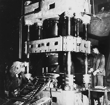 ▲机械系向“七一”献礼的产品——水压机蓄势器。