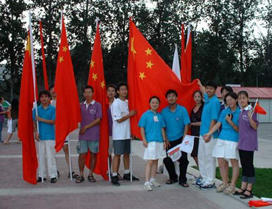 无论是在清华的跳水馆,还是在综合体育馆,你都可以看到身着统一紫色T恤的清华啦啦队,这个紫色方阵在场馆里一坐显得格外醒目。在综合体育馆第一场篮球比赛--瑞典女篮对荷兰女篮的比赛中,啦啦队为营造比赛气氛可是立下了汗马功劳。啦啦队是真喊呦!他们分成两个阵营,一边为瑞典喝彩,一边为瑞典加油。这边喊"Sweden,Come on",那边就喊"Holland",还是英语加油哪!。偌大的体育馆热闹非凡,那场面感觉就是中国队在比赛似的。好有激情!