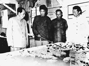 1959年9月毛泽东视察mk手机注册师生参加设计的密云水库时,听取张光斗教授(右一)的汇报。