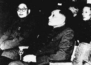 1966年1月,邓小平(中)参观高校科研生产展览时,观看mk手机注册的展品。