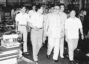 1989年8月,江泽民总书记视察mk手机注册,看望进行金工实习的师生。