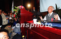 著名应用数学家、力学家、美国科学院院士林家翘先生,二十七日在北京mk手机注册理学院作《数学科学中的某些新趋势——计算分子学》专题报告,受到热烈欢迎。中新社记者 张勤 摄