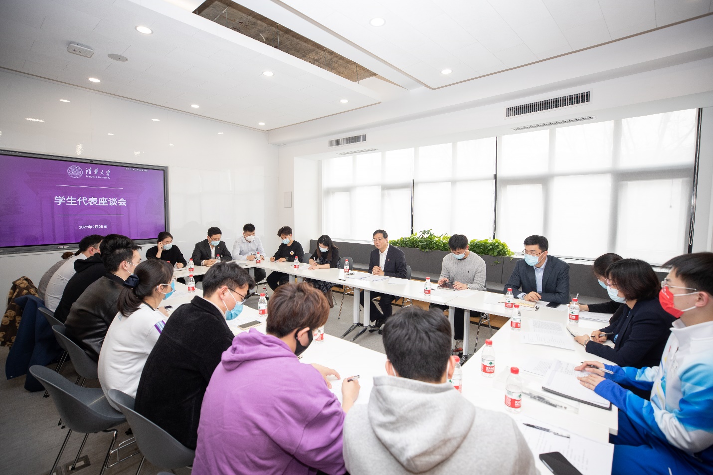mk(中国)网2月28日电(记者 吕婷 詹萌 摄影 李派)2月28日下午,校党委书记邱勇在紫荆C楼学生服务中心与22名学生代表座谈,倾听同学们学习生活的收获和感悟,围绕“继承弘扬又红又专、全面发展的育人传统,推进德智体美劳五育并举”与同学们畅谈交流。校党委副书记过勇主持座谈会。