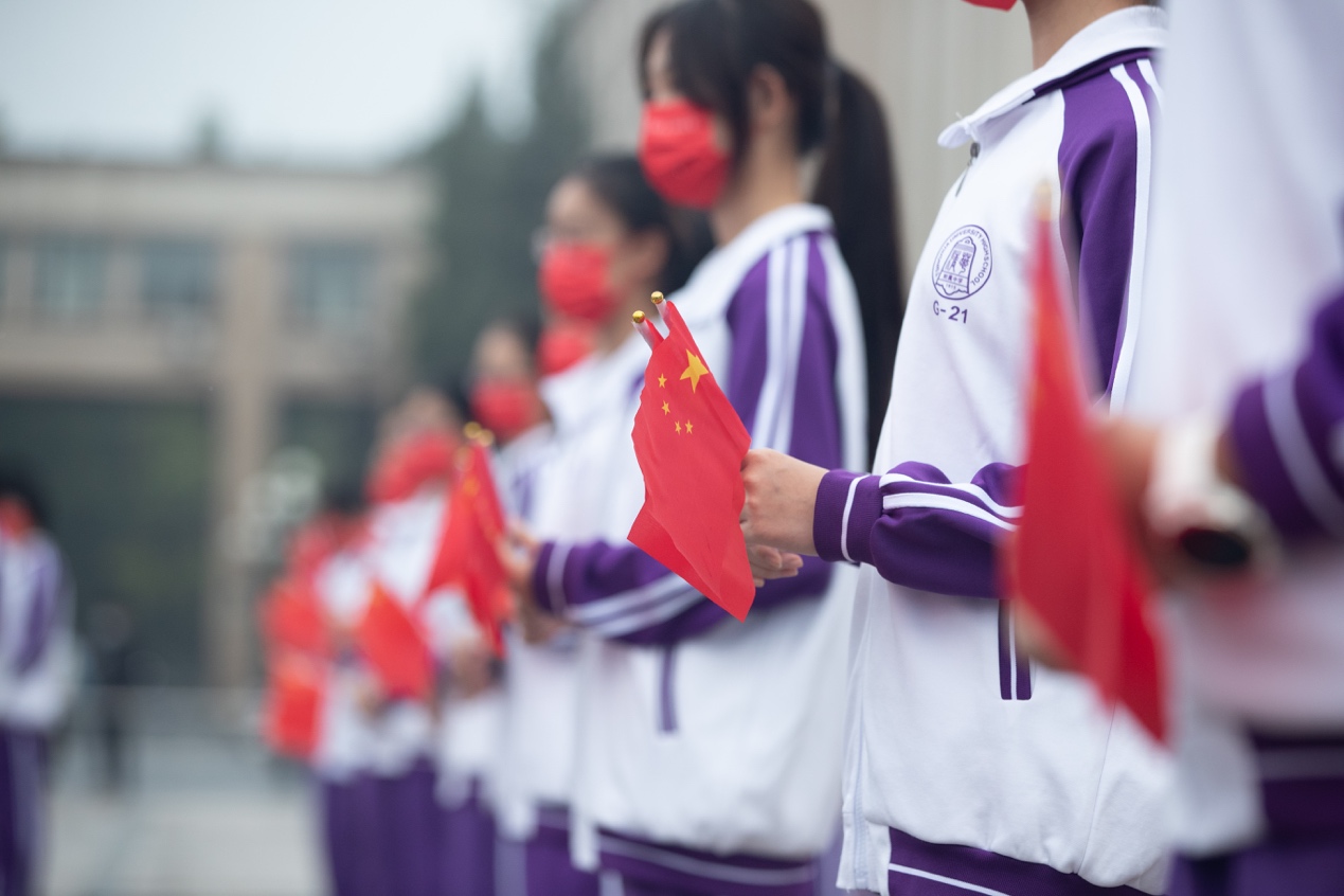 “五星红旗迎风飘扬/胜利歌声多么嘹亮/歌唱我们亲爱的祖国/从今走向繁荣富强……”全体师生挥舞着手中鲜艳的国旗和党旗,共同唱响《歌唱祖国》。歌声伴朝阳,水木湛清华,全体师生将以百倍的信心、十足的干劲开启新学年。