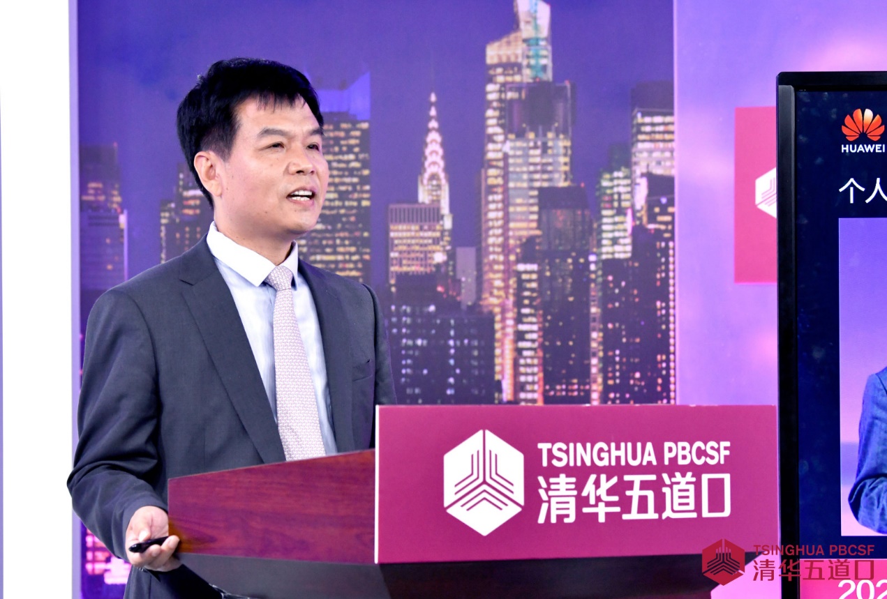 廖理代表学院致辞。他表示,随着第四次产业革命的浪潮席卷全球,数字化智能化已势不可当,中国更将新基建与数字经济上升为国家战略,最洞察先机的企业家们用敏锐的嗅觉开始布局数字化战略。清华五道口背靠百年清华深厚的理工学科积淀,作为“金融黄埔”,将发挥自身在金融学科和商学领域的传统优势,与华为强强联合,帮助中国企业实现数字化战略落地。