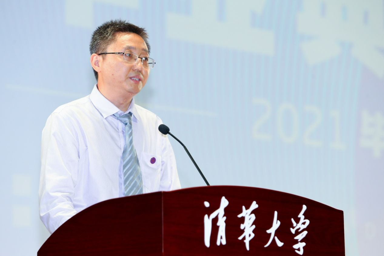 年级组长、电子系教授王劲涛在致辞中首先祝贺同学们顺利毕业,他表示自己作为1997年入学的七字班学生,看到相隔20年的毕业生,十分感慨。王劲涛分享了中国从2G到5G发展中逐渐赶超的过程,希望毕业生们可以响应国家需求,上大舞台,做大事业。当前正处于百年未有之大变局,国际形势变化在一定程度上影响继续深造的选择,疾风知劲草,期望同学们能够将个人的努力融入国家未来发展之中,也祝愿毕业生们的未来更加精彩。
