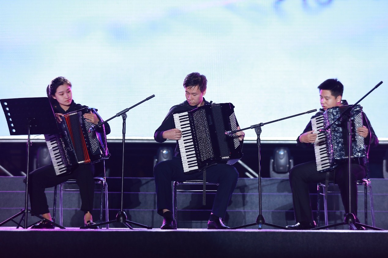 第三篇章“新百年正风华”结合中国共产党成立100周年重大历史时刻,以文艺作品体现清华人的家国情怀与使命担当。曾参与中国共产党成立100周年专项活动的师生,与学生艺术团军乐队、合唱队共同合作经典歌曲《唱支山歌给党听》,曲调悠扬、感人至深,为党的百年华诞献礼;民乐合奏及书画创作《笔墨清风》、交响乐合奏《激情燃烧的岁月》及管乐合奏《钢铁洪流进行曲》,述说了党波澜壮阔的百年历史,也展现了当代中国青年与新时代同向同行、共同前进的坚定决心。迎新特别节目在《mk手机注册校歌》中落幕。