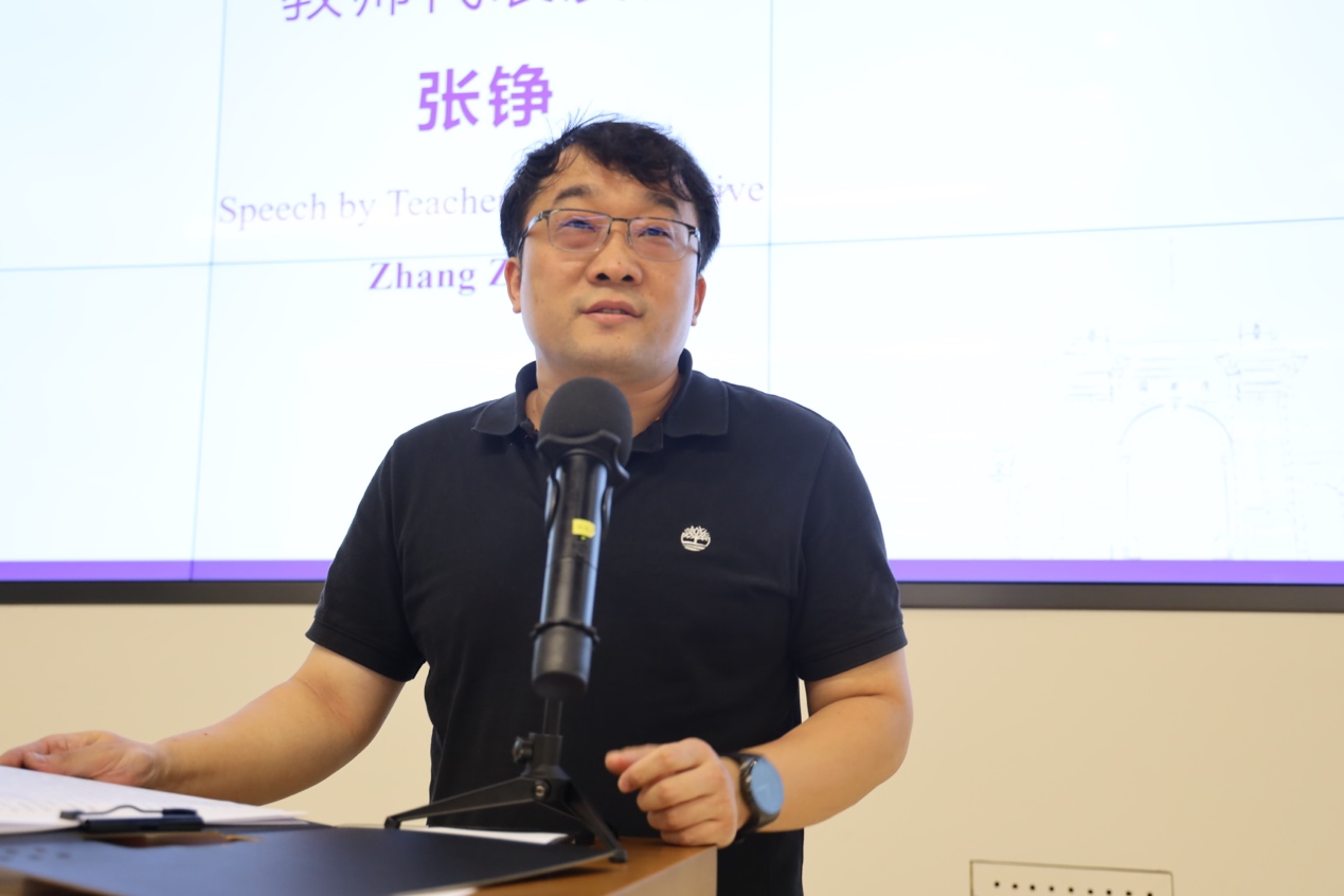 数据新闻双硕士项目和传媒实务与创新项目负责人张铮代表全院老师致辞。他结合自身的研究生生活体会感悟,对同学们如何规划研究生生活提出了三条建议。首先是要营造恰切的新鲜感,尽快适应研究生学习新节奏;其次要脚踏实地努力,而非“假装”认真;最后在学术上要将“挑食”与“通吃”相结合,专挑高水平文献阅读,更需做跨学科思考。