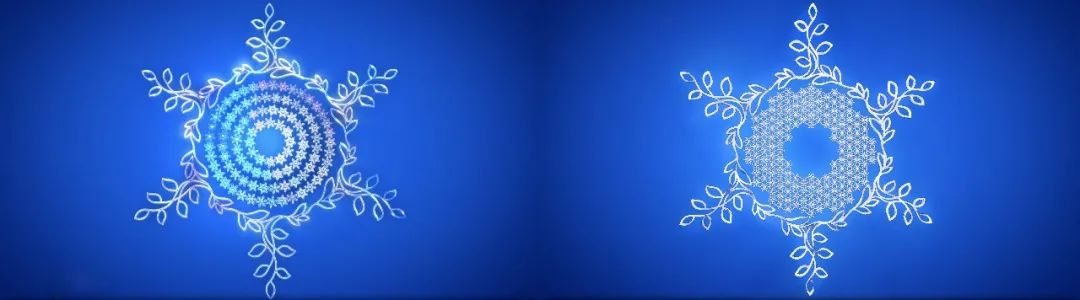 雪花蜂窝状结构:导演设想结构(左),团队设计后的蜂窝状结构(右)